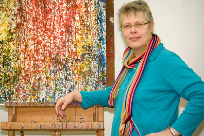 Adries artwork at Gallery Herenplaats is characterized by strong lines. Most of her work is abstract, but if one looks closely, it becomes more figurative.
